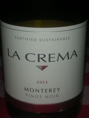 This, 2023 bottled, Pinot Noir is a lower end of La Crema. Still, it is a good wine with dinner of chicken or fish, even Steakies!